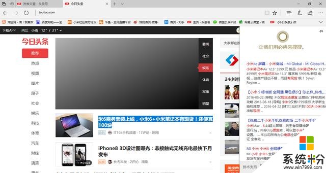 首先,你可以直接在Microsoft Edge界麵喚出小娜進行搜索: